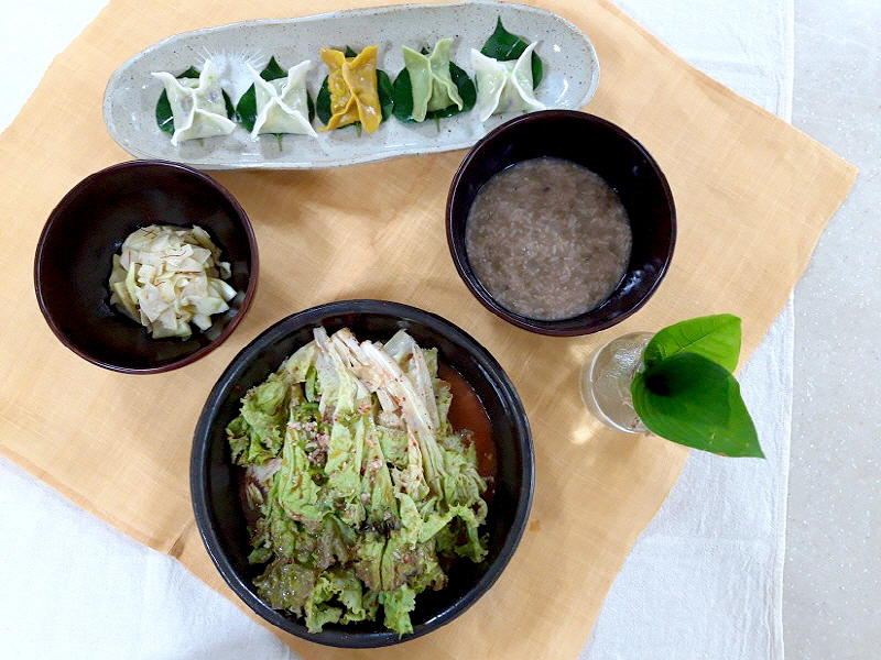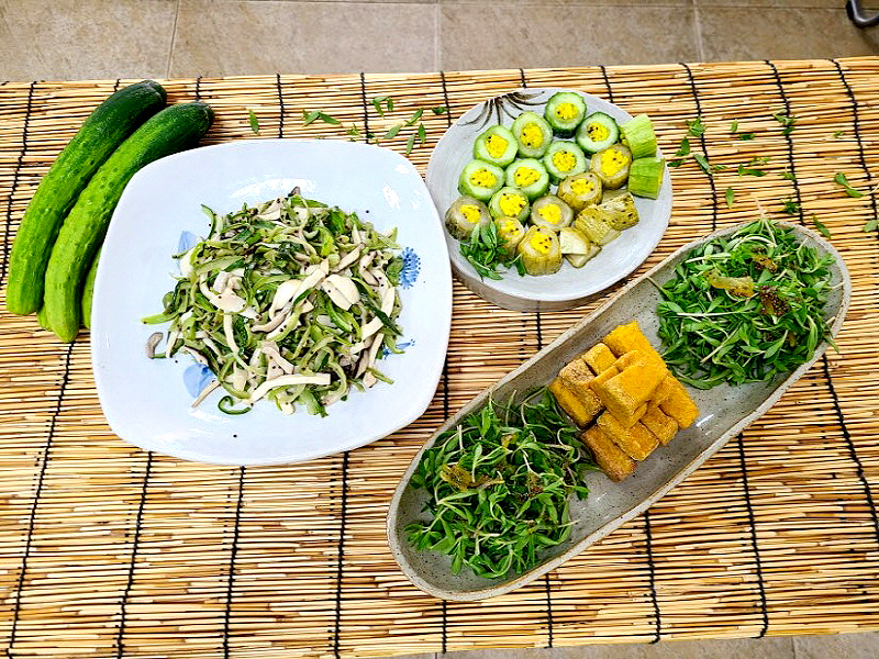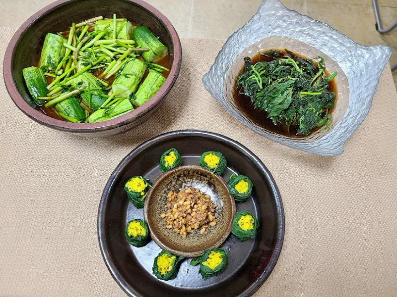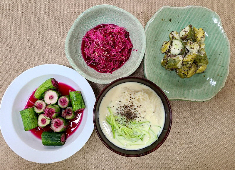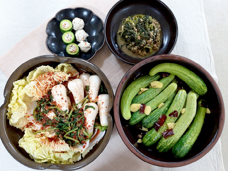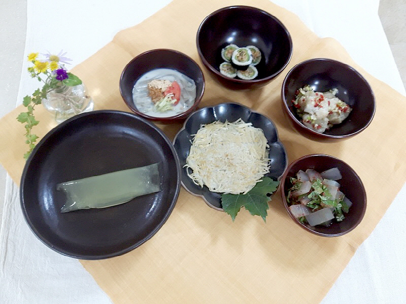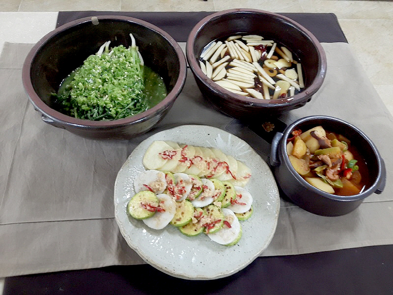여름은 그 영양분이 뿌리에 있지 않고 잎에 영양분이 있는 시기이므로 상추, 열무등 제철의 잎채소를 즐겨 먹어야 함으로 애호박이나 풋고추, 수분이 많은 과일 껍질이나 가지, 냉기와 열기를 달래주는 표고냉면이나 잣콩국수, 비타민과 무기질이 풍부한 감자, 짭쪼름하고 아삭아삭한 더위에 지친 입맛을 살려주는 오이지등 여름에 풍성하게 나오는 건강을 지켜주는 식재료로 건강한 사찰음식을 배울 수 있다.
