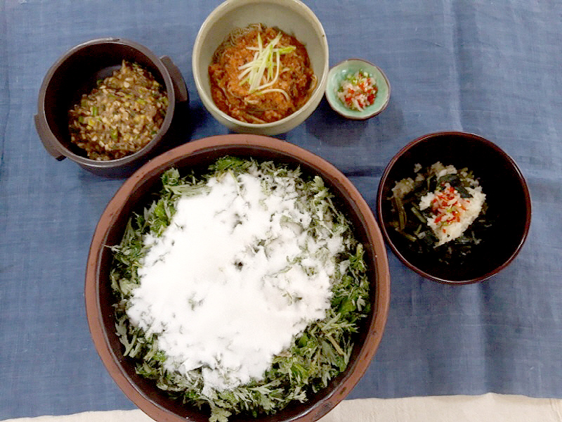 들나물, 나무나물들 물쑥뿌리, 냉이, 쑥, 참죽, 원추리, 죽순, 두릅, 아카시아꽃이나 꽃다지, 냉이꽃과 같은 겨울을 이겨낸 식물과 봄꽃들은 역동적인 봄을 잘 보낼 수 있도록 면역력을 올려주는 식품들이고 이러한 제철재료를 이용하여 사찰음식의 봄을 알게 한하고 다가오는 여름을 대비할 수 있도록 한다.