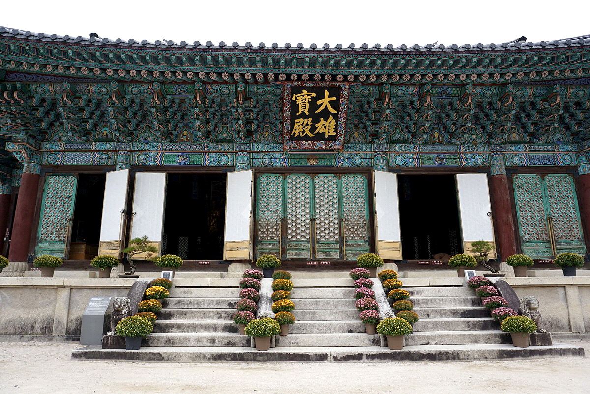 <사적기>에 의하면 고려 명종 때 이미 80여동의 건물을 가진 대사찰이었고, 1951년 공비들에 의하여 소실되기 전만 하여도 건물 총수가 80여동을 유지하고 있었다. 현재까지 재건된 건물을 합하면 약 50여동의 대사찰로서 그 사격을 유지하고 있다. 중요한 건물은 대개가 서향하여 있다. 6ㆍ25사변 전만하여도 가람배치가 법계도의 도표처럼 배치되어 비를 맞지 않고 경내를 다닐 수 있었으며, 대방만도 6방이 남과 북으로 나누어져 있었다 한다. 6방은 남쪽의 법성료ㆍ해청당ㆍ행해당, 서쪽의 문수전ㆍ임경당ㆍ도성당이다. 현존하는 건물을 중심으로 동구에서 부터 설명하면 다음과 같다.
