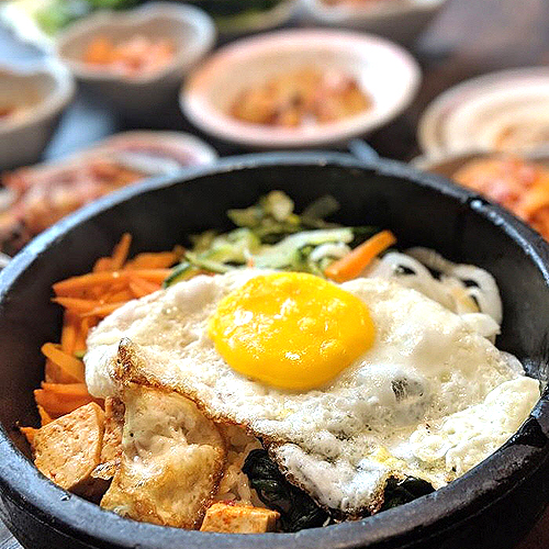 돌솥비빔밥: 1만원 400 .(뜨거운 돌그릇에 제공) 야채, 고기, 계란후라이를 밥 위에 고춧가루, 김치를 버무린 밥. 감자 또는 미욕 수프