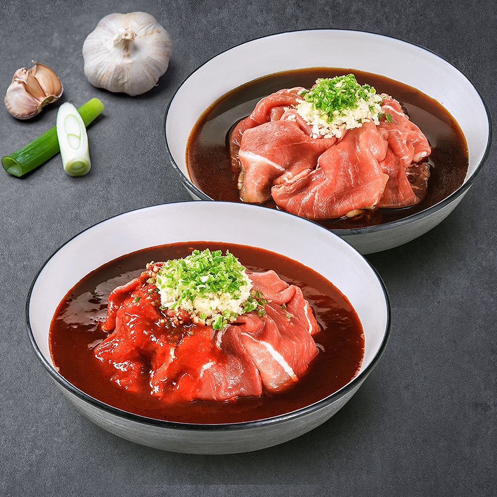 명륜진사갈비는 돼지갈비와 최고 등급의 목전지를 구성하여 만든 양념구이 요리입니다.