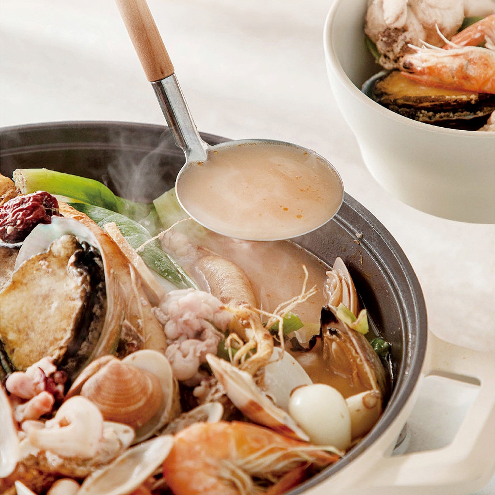 - 해물과 채소를 가득 넣은 육수를 사용하여 만든 특제 수제양념장