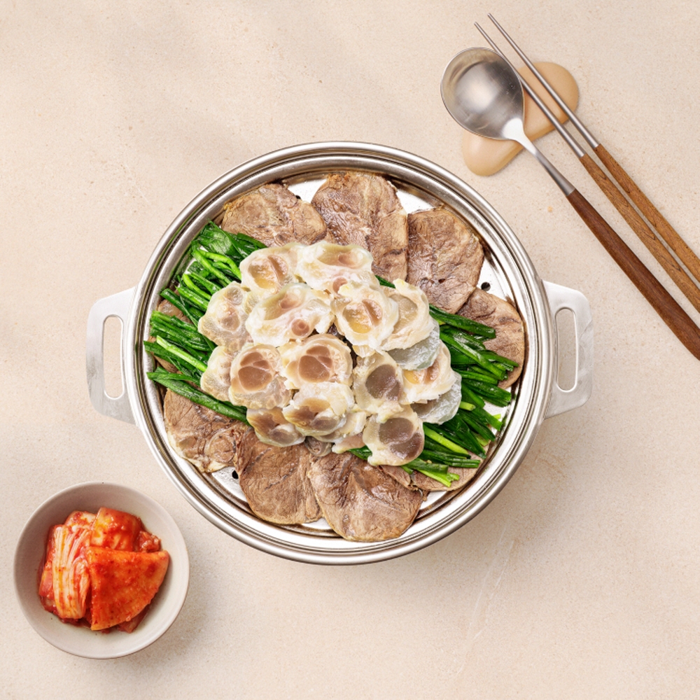 12시간 끓여 낸 한우사골육수본사에서 공급하는 좋은 품질의 재료들로 넣고 붓고 끓이면 맛있는 설렁탕이 완성되는 1분 조리 레시피를 개발해 편리함을 높였어요.