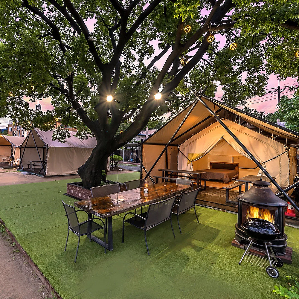 주변에 여러 음식점이 성업 중이라 맘에 드는 요리를 맛볼 수 있다는 것 또한 장점이며, 캠핑장에는 글램핑 9개 동이 있다.