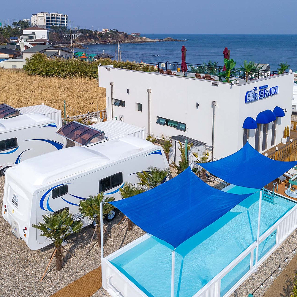 바다뷰, 독체, 카라반, 미온수, 수영장, 개별바베큐장, 개별 제빙기, 개별정수기, 개별스타일러, 개별욕실이 완비되어 있으며 한적한 바닷가를 산책하듯 거닐수 있는 간이 해변이 있다.