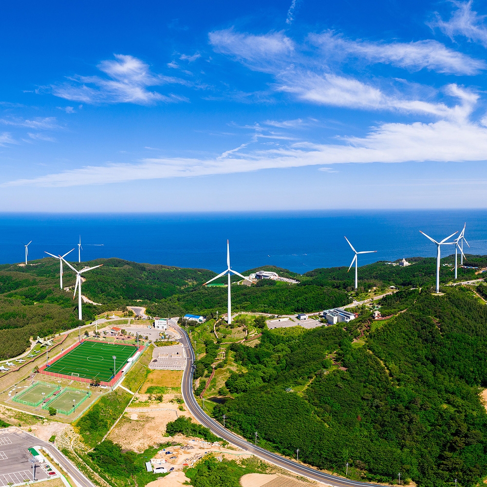 지금은 영덕의 랜드마크이자 친환경 에너지의 성지가 된 창포풍력발전단지는 가슴이 확 트이는 시야를 제공합니다. 바다 최일선의 전망 외에도 풍력발전단지에는 특별한 체험 거리도 한 가득 모여있습니다.