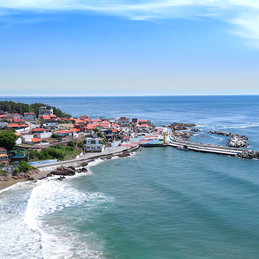 부흥리 마을은 경북 영덕군 남정면에 위치한 작은 어촌입니다. 부흥리 마을의 가장 큰 특징은 멀리서도 눈에 띄는 오렌지색 지붕입니다. 이 지붕색에서 상쾌하고 밝은 에너지를 느낄 수 있고 이국적인 분위기까지 전해집니다.