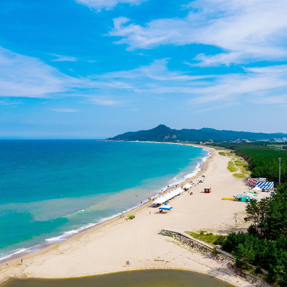 바다를 바라보는 소나무 숲은 캠핑을 즐기기에 안성맞춤입니다. 낮에도 그늘이 있어 더위를 피하기 좋습니다. 송천과 바다가 합류하는 지형적 조건 때문에 어종이 풍부해서 강태공들은 꼭 가봐야 할 곳이기도 합니다.