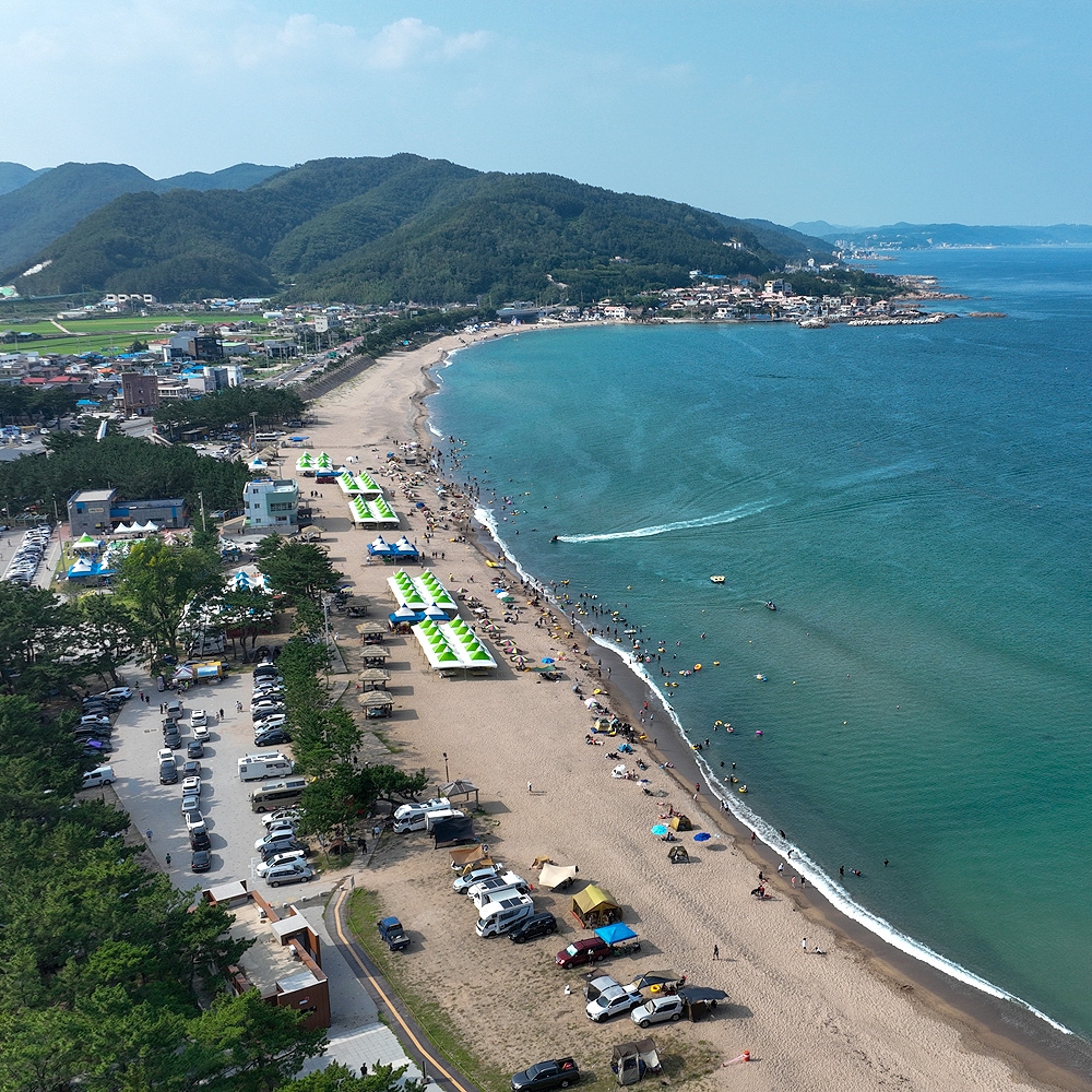 영덕 특유의 에메랄드 빛 바다와 잔잔한 파도, 반짝이는 백사장은 흡사 남태평양의 휴양지를 연상시킵니다. 해변을 둘러싼 울창한 솔밭은 시원한 그늘과 상쾌한 바람을 무한 공급하죠. 최근 입소문과 SNS를 통해 알려진 장사해변은 가족 단위의 캠핑, 차박의 숨은 성지로 주목받고 있습니다. 수상스키, 바나나보트, 제트스키 등의 레저 시설과 탈의장, 샤워장, 주차장 등 편의 시설이 쾌적하게 갖춰져서 청소년 수련 장소로도 안성맞춤입니다.