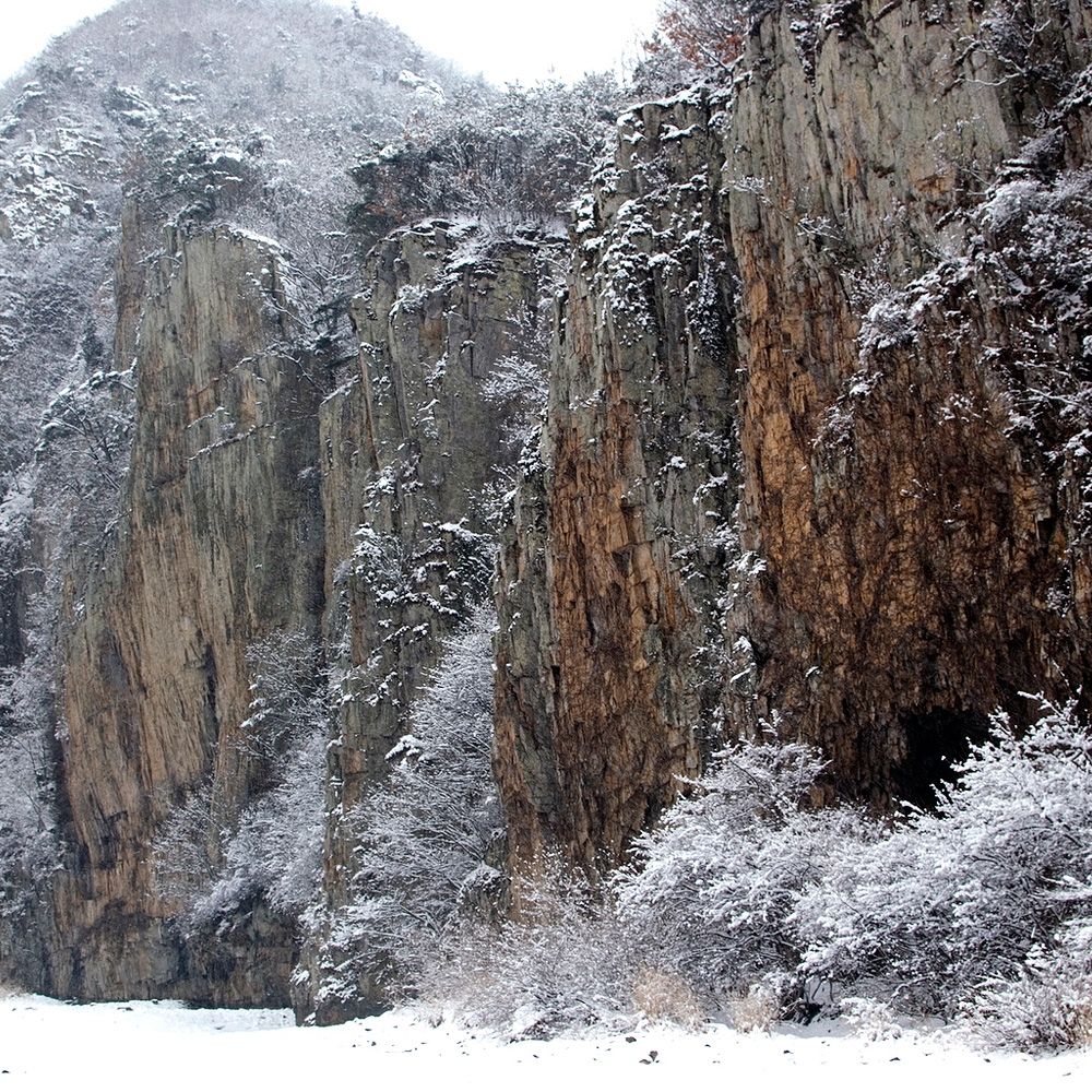 병암(屛巖)은 ‘병풍처럼 펼쳐진 바위 절벽’을 뜻한다. 옛날에 호랑이가 놀다가 떨어져 죽었다 하여 ‘범덤’이라 부르기도 한다. 병암을 이루고 있는 세립질 화강암에는 세로 방향으로 틈이 만들어져 있는데, 지표면에서 오랜 시간 동안 풍화와 침식을 받으면서 절리를 따라 쪼개지고 강물에 의해 깎여 지금의 아름다운 절벽으로 남게 되었다. 병암 단애와 더불어 뒤편에 자리한 범덤숲 또한 여름철에 시원하고 아름다운 경치로 많은 사람들이 찾는 곳이기도 하며, 왼쪽에는 숙종 28년(1702)에 청송부사 이문징이 창건한 병암서원이 있다.
