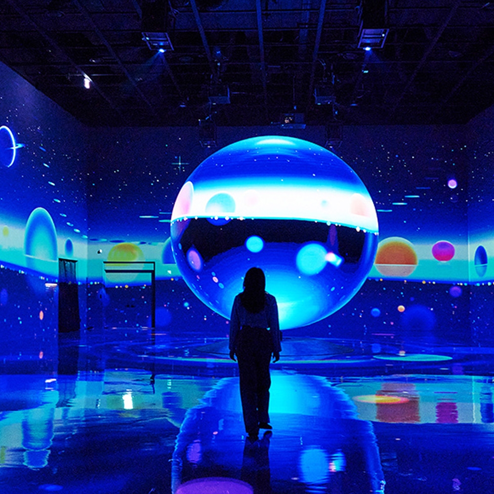 미지 세계로의 여행이 펼쳐지는 곳. 르 스페이스는 거대한 은하, 신비로운 행성과 우주를 테마로 압도적인 볼거리를 선사하는 국내 최대 규모의 실감형 미디어아트 전시관입니다. 약 2,000평 부지의 넓은 공간에 총 18개의 전시관이 마련되어 있으며, 관람객의 동작에 반응하는 ‘인터랙티브 기술’과 작품 자체가 움직이는 ‘키네틱 아트’가 곳곳에 설치되어 있어 더욱 생생한 몰입감을 선사합니다.