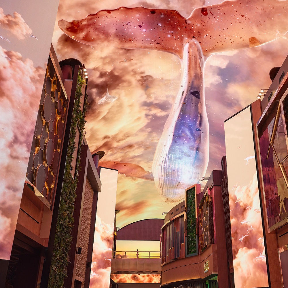 눈앞에 펼쳐지는 압도적인 경험. 오로라(Aurora)는 길이 150m에 달하는 천장과 높은 벽면을 초고화질 LED로 가득 채워 초현실적인 장면을 현실감 있게 구현한 몰입형 디지털 엔터테인먼트 거리입니다. 어느 곳에서도 본 적 없던 새로운 유형의 디지털 공간에서 꿈꿔왔던 상상이 현실이 되는 순간을 만나보세요.