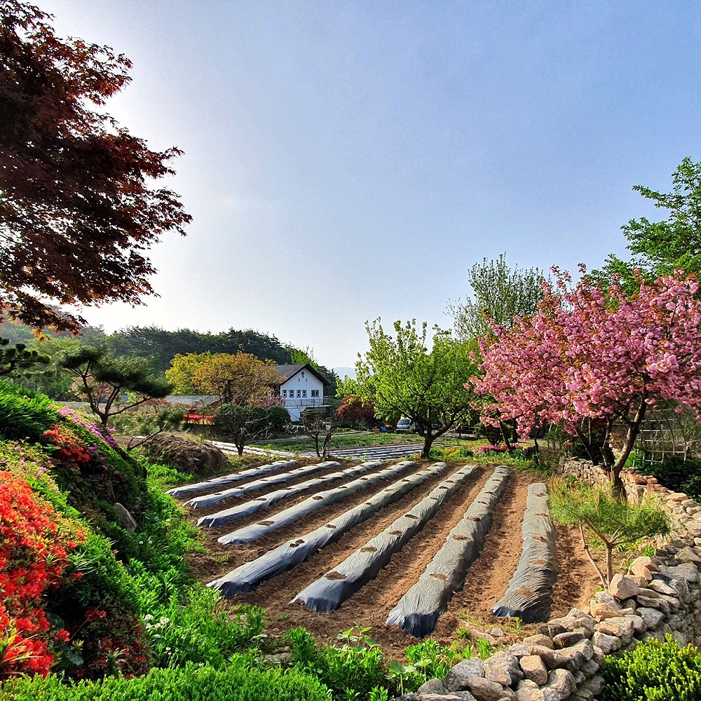 사계절 : 봄(산야초, 야생화), 여름(맨손 송어잡기, 수영장놀이), 가을(오미자, 발효액)