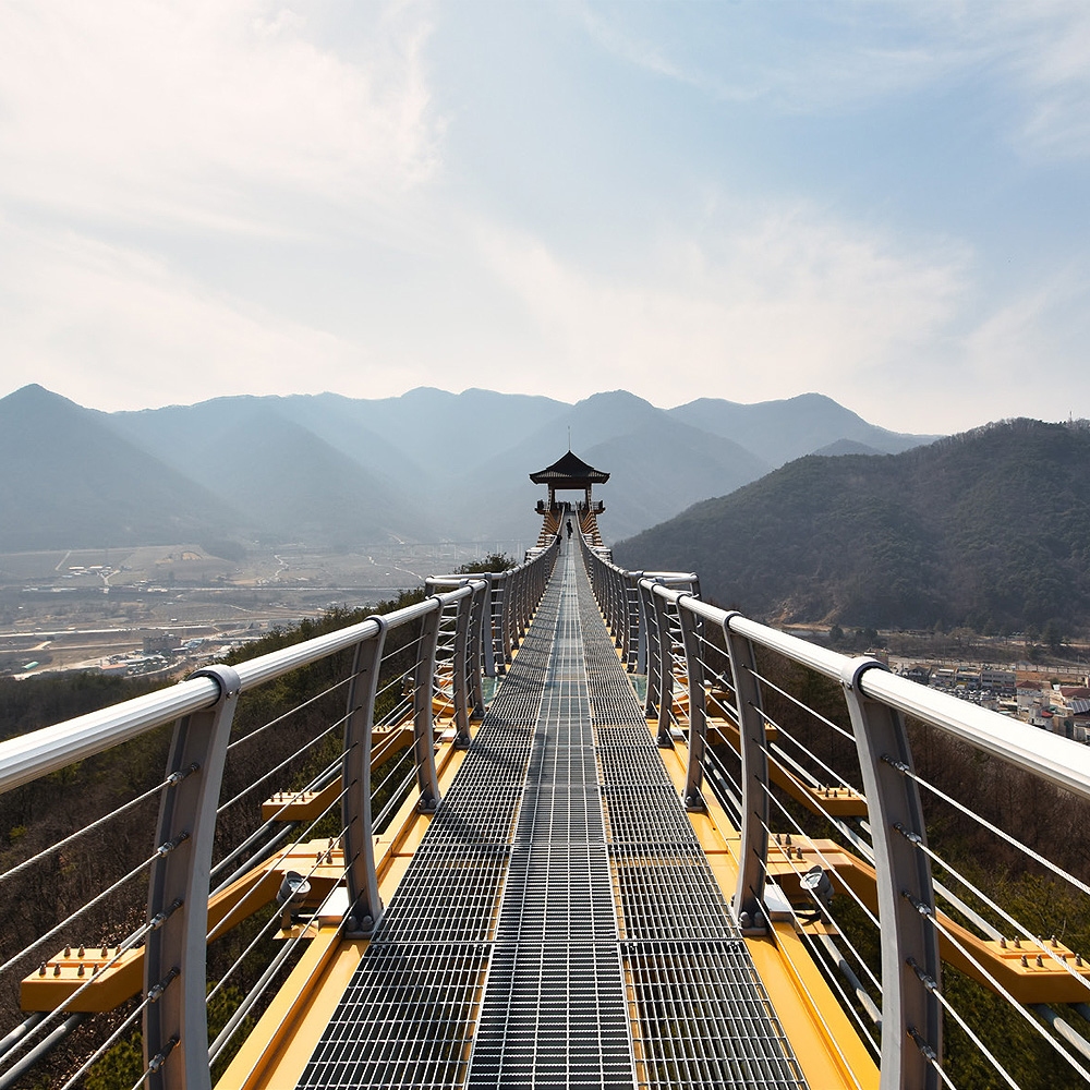 주흘산을 한눈에 바라볼 수 있는 길이 160m, 폭 1.5m 보행 현수교다. 스틸 그레이팅 바닥과 유리바닥이 특징이며, 문경 읍내, 평야, 조령천 등 탁 트인 풍경을 감상할 수 있다. 등산로 입구에서 도보 약 10분이면 출렁다리에 도착하며, 문경의 대표 관광 명소로 많은 방문객이 찾는다.