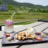 경주 고속/시외버스터미널에서 10분이 채 걸리지 않는 석장동으로 가면 뒷산과 앞들의 뷰를 가진 루프탑 카페 ‘플로어’를 만날 수 있다. 화랑마을 가는 길 중간에 위치해 있고, 2층 건물의 옥상이 루프탑으로 꾸며져 있다. 야외 캠핑을 연상시키는 우드 박스 테이블과 의자가 있고, 편안한 빈백 쇼파가 있는 공간은 제법 경쟁이 치열하다. 시그니처 메뉴는 플로어 모히또로, 석장동의 푸른 하늘과 연둣빛 들녘을 닮은 컬러풀한 음료이다. 향긋하고 달콤한 코코넛커피도 인기 메뉴 중 하나.