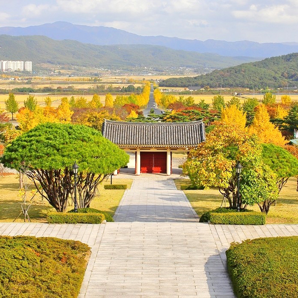 한반도 최초의 통일국가였던 신라 삼국통일의 위업을 기리고자 지난 1977년 건립된 전각이다. 전각 안에는 태종무열왕, 문무대왕, 김유신 장군의 영정이 모셔져 있다. 전각을 둘러싼 회랑에는 삼국통일의 일련의 과정을 보여주는 기록화가 있다. 전각 밖의 영역도 넓게 조성되어 있는데 조경을 잘 해둬서 풍광이 좋다. 통일전 입구 오른쪽의 연못에는 여름이면 수련으로 가득 찬다. 통일전이 제법 높은 언덕에 자리하고 있는 덕에 이곳에서 내려다보는 전망이 매우 좋다. 가을날 통일전 앞으로 쭉 뻗은 도로는 양옆으로 은행나무 가로수가 물들어 유명한 가을명소가 된다.