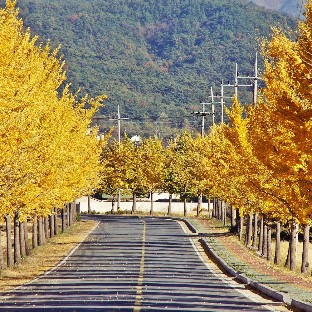 경주의 대표적인 가을명소 중 한 곳이다. 신라 삼국통일의 업적을 기리기 위해 건립한 통일전 앞에 시원하게 내어진 직선 도로 양 옆으로 은행나무 가로수가 늘어서 있다. 은행이 물드는 10월말부터 11월초면 은행나무 아래 산책로를 거닐며 가을의 정취에 취할 수 있다. 통일전으로 올라가 누각 위에서 통일전 은행나무길 전체의 풍광도 함께 담아 보자.