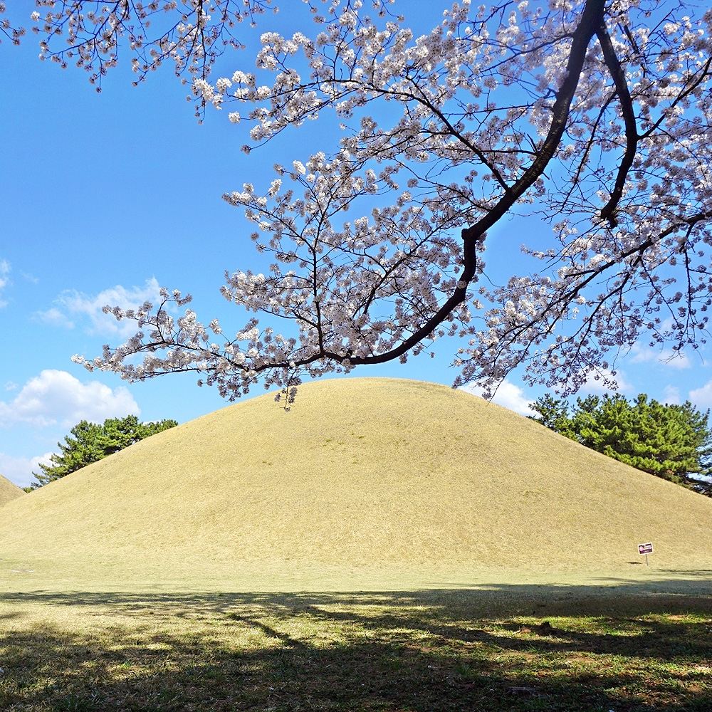 능은 피장자에 대한 추정이 비교적 확실하게 가능한 행운을 가진 고분에 붙인다. 미추왕릉은 여러 이야기를 품은 능이다. 삼국사기에 ‘재위 23년에 돌아가니 대릉에 장사지냈다’는 기록이 있어 이 일대를 ‘대릉원’이라 부르게 되었다는 이야기가 전한다. 또, 하나의 이야기. 이서국에서 신라를 침입했을 때 머리에 댓잎(대나무잎)을 꽂은 군사들이 몰려와 그들을 물리쳤는데 군사들에게 꽂혀 있던 댓잎이 미추왕의 무덤 앞에 소복이 쌓여 있었고, 이에 사람들은 그 후 미추왕릉을 ‘죽릉’ 또는 ‘죽장릉’이라 불렀다. 이후 나라에 어려움이 있을 때마다 미추왕릉에서 제사를 지냈다고 한다. 이야기 가득한 미추왕릉의 주변에 아름드리 벚나무가 호위하듯 서 있다. 벚꽃 흐드러지는 봄날, 벚나무 단풍이 드는 가을날, 모두 찾기 좋다.