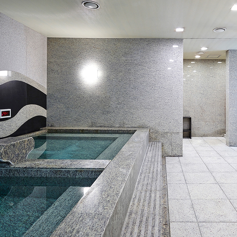 따뜻한 느낌의 화강암과 잔잔한 물결 패턴의 인테리어가 돋보이는 원적외선 사우나는 몸과 마음의 피로를 씻어내는 편안한 휴식 공간입니다.