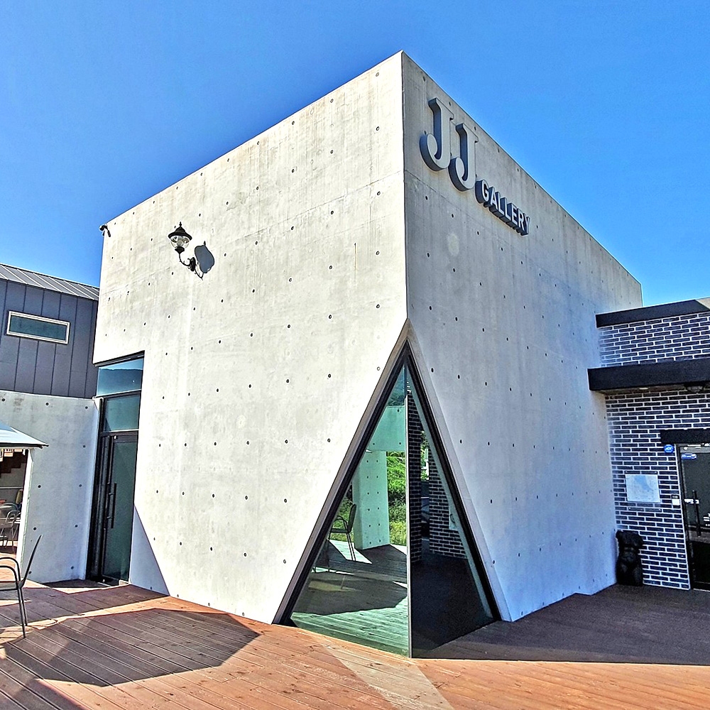 경주 현곡면에 머물러 가기 좋은 갤러리 카페 JJ갤러리카페가 자리한다. 지난 2017년 개관한 갤러리형 카페로 서양화를 그리는 김정자 작가가 운영하는 곳이다. 지역의 중견 화가인 김정자 작가는 도심에서 벗어나 예술을 가까이에 두고 커피 한 잔의 여유를 가질 수 있는 공간을 만들기 위해 현곡면 한적한 농촌 마을에 갤러리 카페를 열었다. 현대적 감각의 건물이라 논밭 사이의 좁은 도로를 가다 보면 바로 눈에 띈다. 커피를 마실 수 있고, 브런치를 즐길 수도 있다. 카페는 야외공간과 내부공간, 그리고 작가의 작업실로 이루어져 있다. 내부공간의 벽면에는 작가가 직접 큐레이션한 기획전시가 꾸며진다. 외부 테라스와 잔디마당에서는 현곡면 들녘의 넉넉한 풍경을 오롯이 담을 수 있다. 고요하게 그림 보며 커피를 즐기고 싶다면 내부 공간에서 한 자리 차지해 여유를 부려 보자. 두 공간 모두 매력적이고, 사색을 즐기기 좋다.