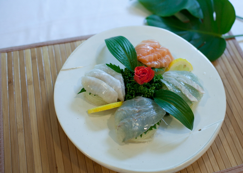활어회, 해물냉채, 주방장특선요리, 진품죽, 계절샐러드와 백김치, 전 두부 닭냉채, 도토리전 새싹무침, 떡갈비와 어린잎야채무침, 시절음식 1가지, 탕류, 황태찹쌀 튀김요리, 한방 연저육보쌈, 3첩반상, 과일 또는 병과,시절한차