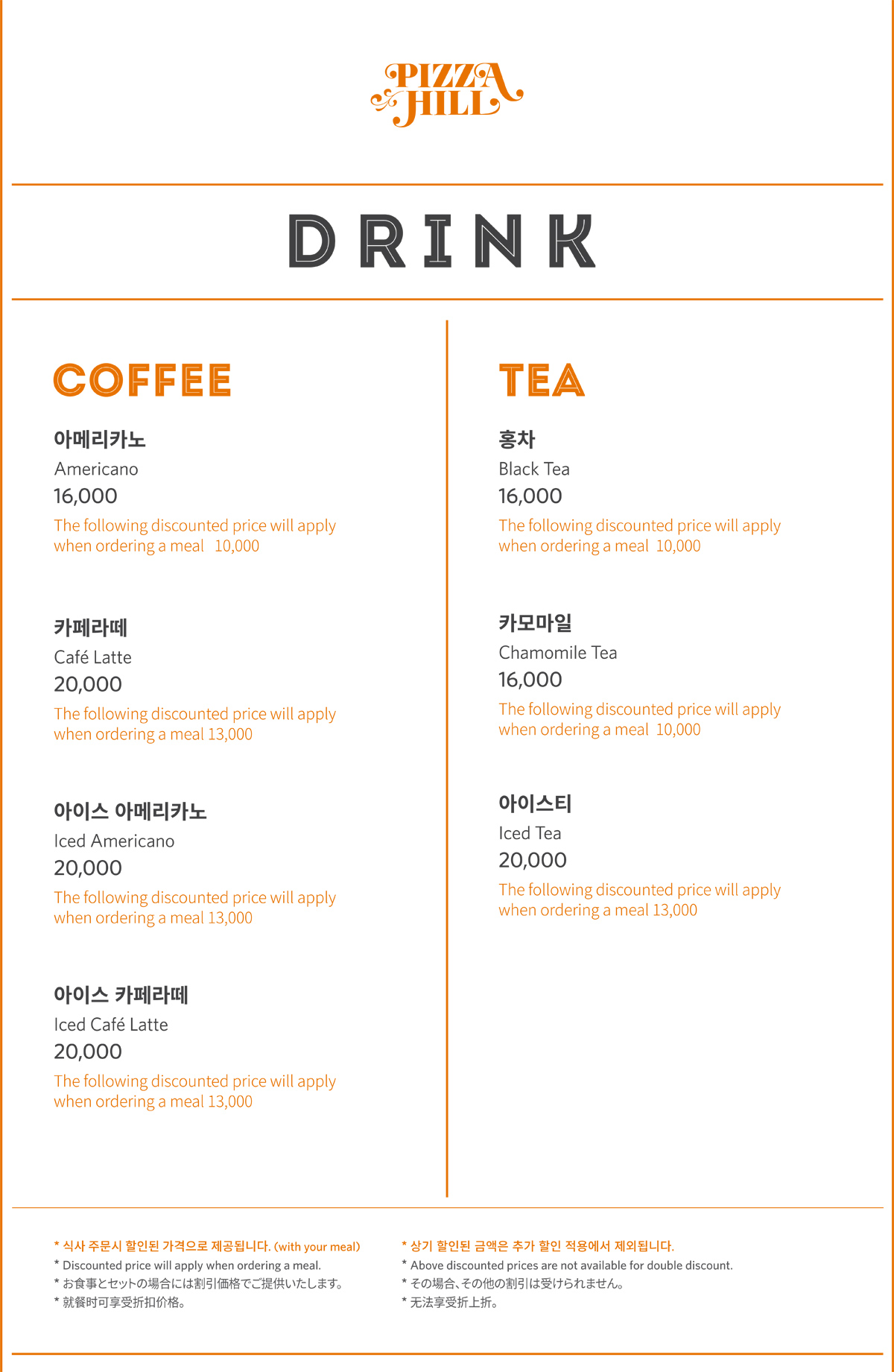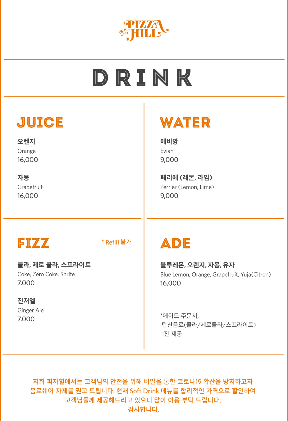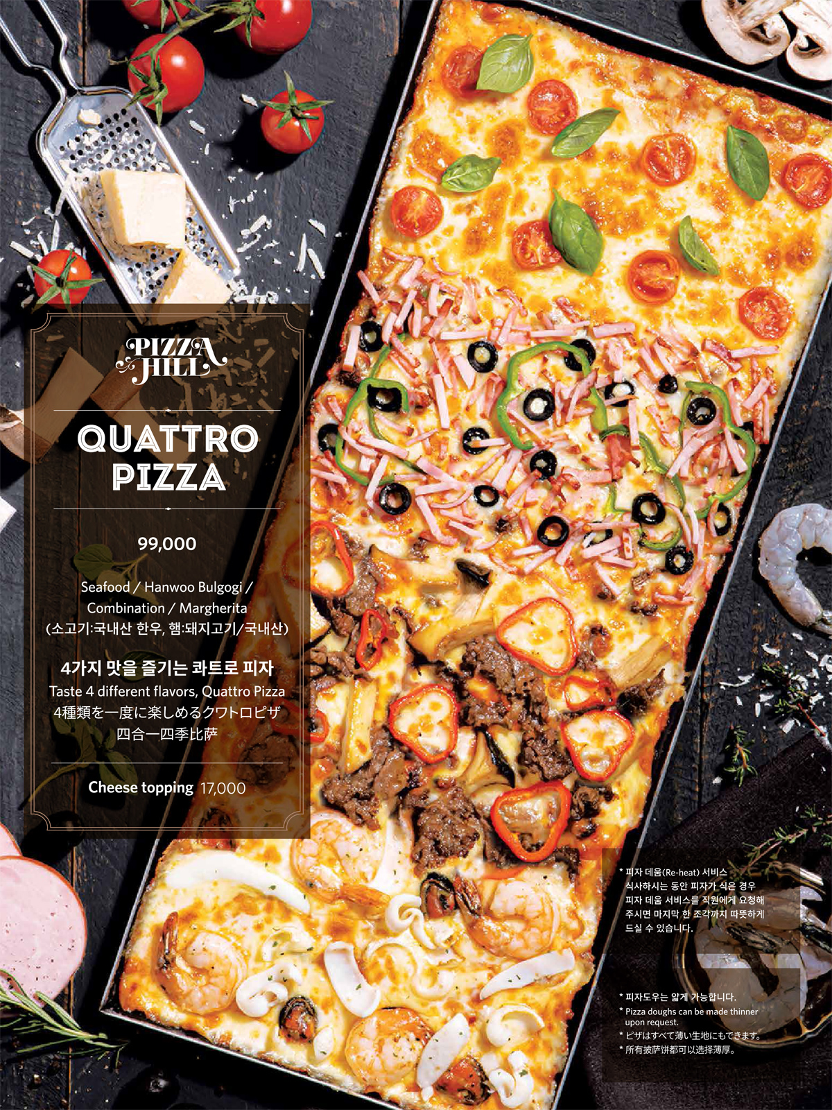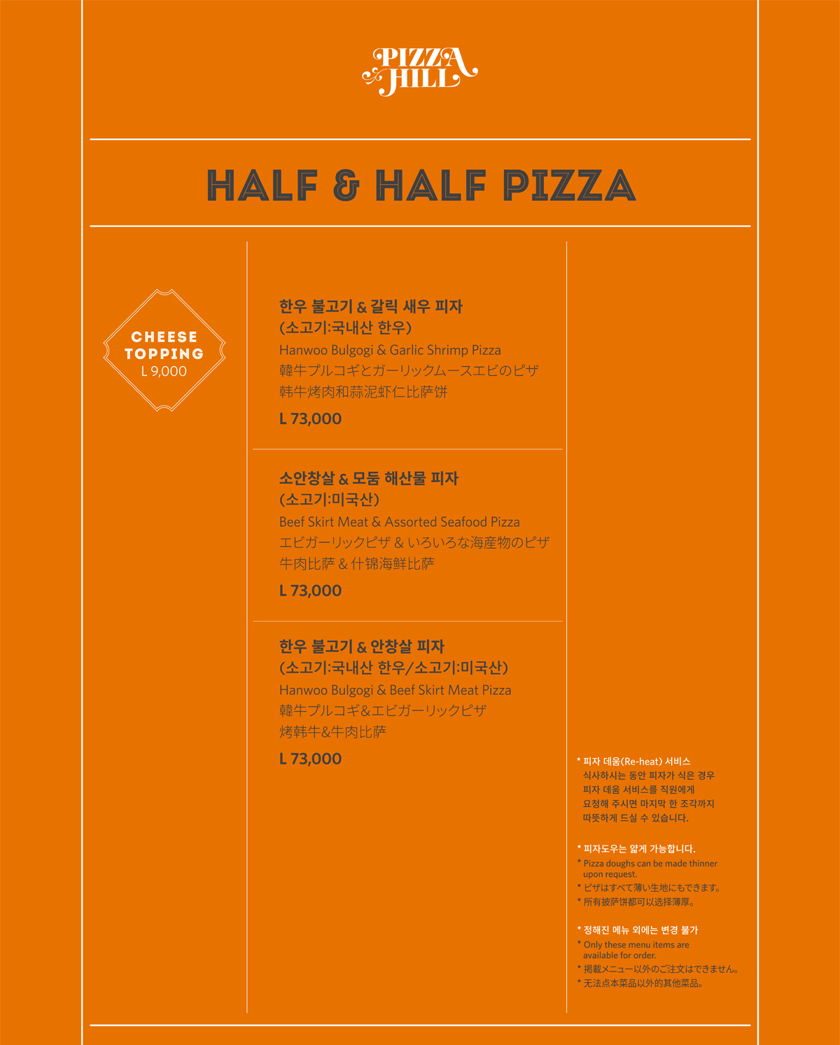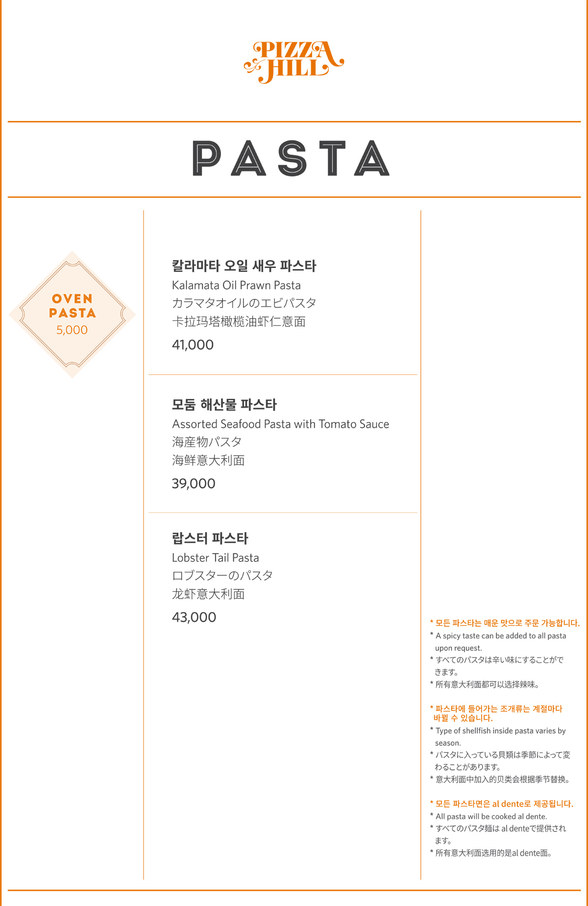 피자힐 도우와 파스타면에는 일체 계란이 첨가되어있지 않습니다. Pizza dough and pasta noodles both made without eggs.
