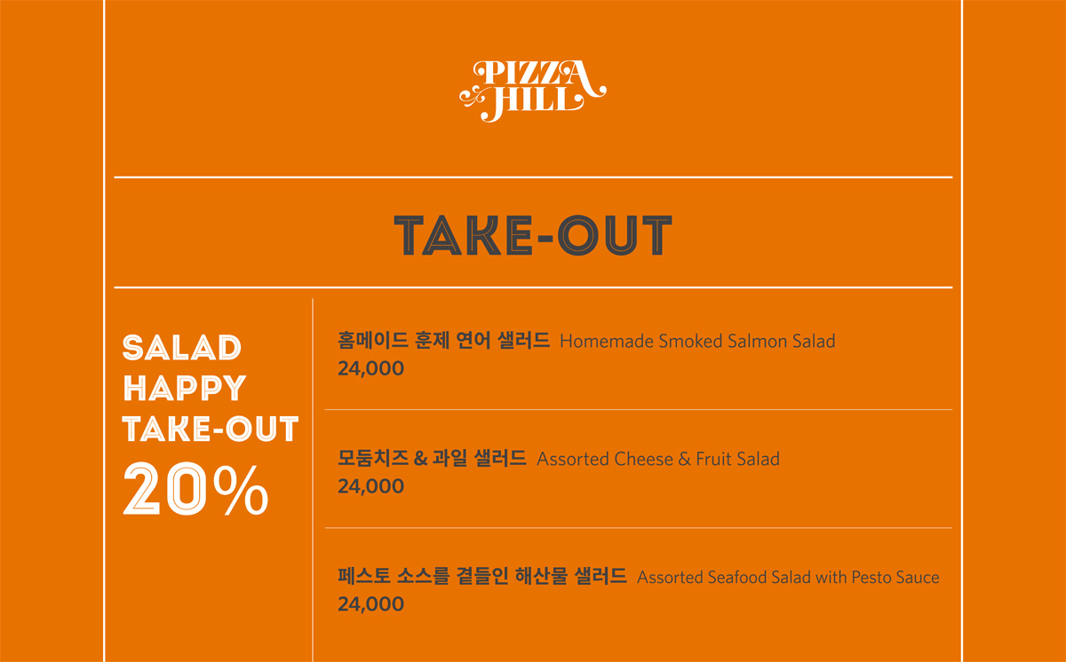 피자 포장 주문 시 정규 금액의 20% 할인 혜택을 드립니다.