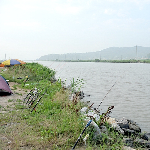 수로 양옆으로 차량 진입이 용이하여 가족터 또는, 휴가철 낚시터로 손색이 없다.