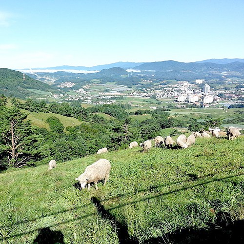 대관령 알프스양떼목장은 해발1,238미터의 고루포기산 중턱 기슭에 자리잡고 있으며 남북으로 내려본 선자령과 능경봉, 좌측으로는 발왕산과 그밑에 용평스키장 알펜시아 스키점프대,멀리 오대산 비로봉까지 대관령의 팔경과 시가지를 한눈으로 바라볼수있는 참으로 전경이 아름다운 곳 입니다.