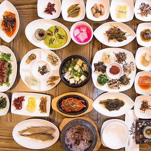 산야초 내음이 물씬 풍기는 듯한 상차림은 몸에만 좋은 것이 아니라 보는 눈도 즐겁습니다. 대추가 들어간 불고기와 전, 묵무침 등 다양한 음식들이 한상 차려집니다.