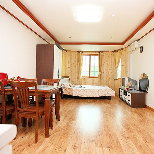 건강까지 생각하여 신축한 웰빙 콘도형펜션. 하루라도 좀 더 쾌적한 곳에서 휴식을 하시기를 바라는 마음에서 건물의 벽은 살아 숨쉰다는 벽돌로 쌓았고, 바닥은 친환경 바닥재를 썼습니다.