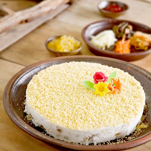 식사는 주로 제철에 맛볼 수 있는 나물들을 다섯 가지 정도 뷔페식으로 구성하며 여기에 농장에서 재배 한 사과로 만든 고추장을 넣어 비빔밥을 먹을 수 있도 록 준비한다.