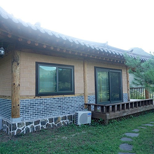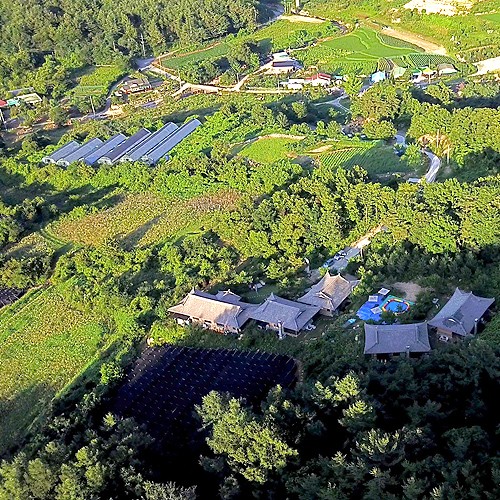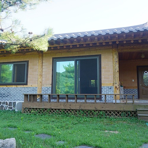 황토로 지은 교육관 한 채와 숙소 네 채, 묵나물 체험장으로 이루어져 있습니다.
