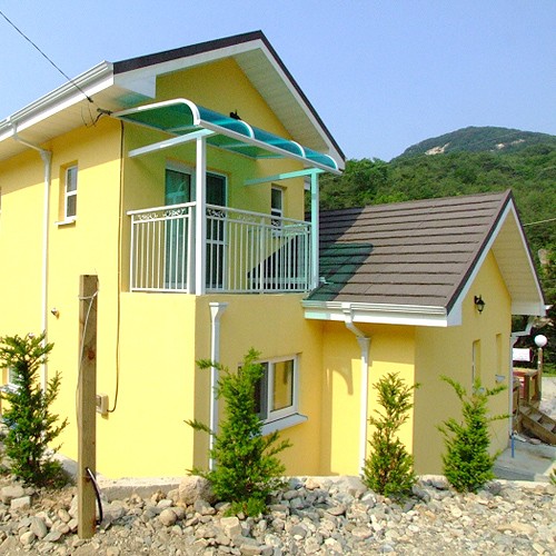 송림펜션은 유럽형주택으로 AIC벽돌과 친환경 독일 페인트를 사용하여 이국적이면서 새로운 느낌을 주는 웰빙형 펜션입니다.