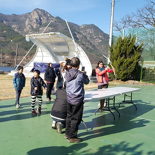 야외무대와 팔각정이 마련되어있는 마을광장에서는 활쏘기, 족구, 배구 등의 스포츠를 즐길 수 있는 운동장이 있는가하면 그네와 시소도 마련되어 있어 이 마을을 찾아온 가족이나 단체 모두 즐거운 한때를 보낼 수 있다.