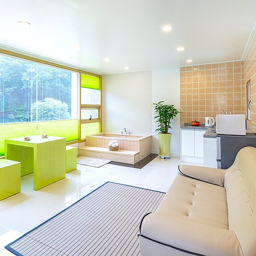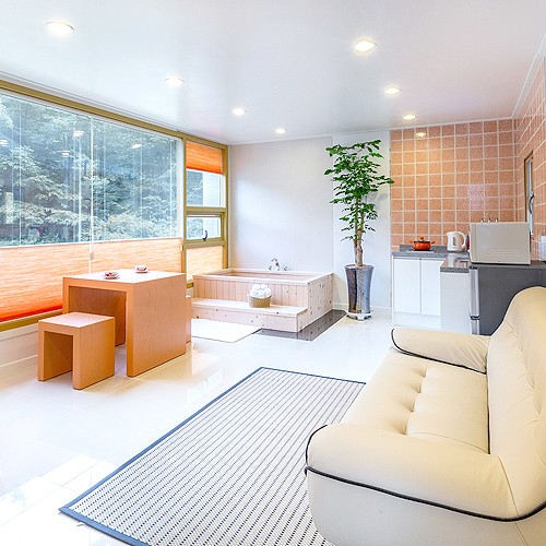 부대시설 : 카페, 단독바비큐장, 수영장, 개별주차장, 호수와 잔디정원, 산책로, 히노끼탕