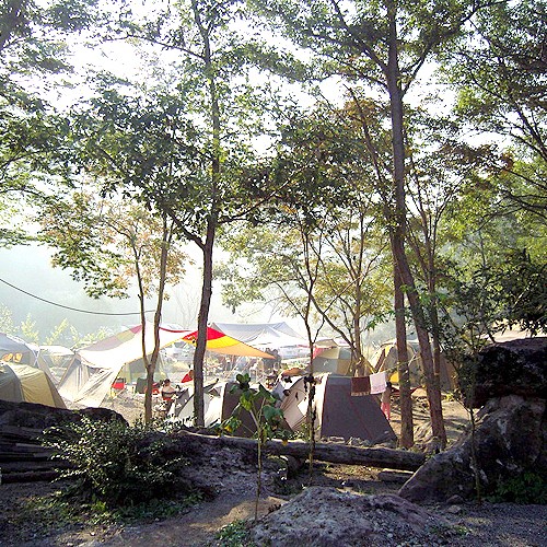 A 지역 24 사이트 - 항시 그늘진 곳은 6사이트, 오후 12시이후 그늘진 자리 8사이트, 오후 4시 이후면 모든 자리에 그늘이 지며 바닥엔 파쇄석이 깔려 있다.