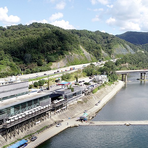 휴양소같은 휴게소 - 금강을 따라 편안한 데크산책로를 설치하여 가족, 연인과 함께 풍경과 휴식을 즐길 수 있는 휴게소입니다.