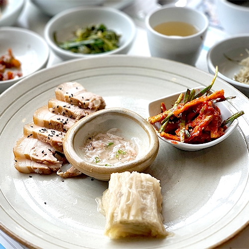 전채요리 + 보쌈(돼지고기) + 식사 |