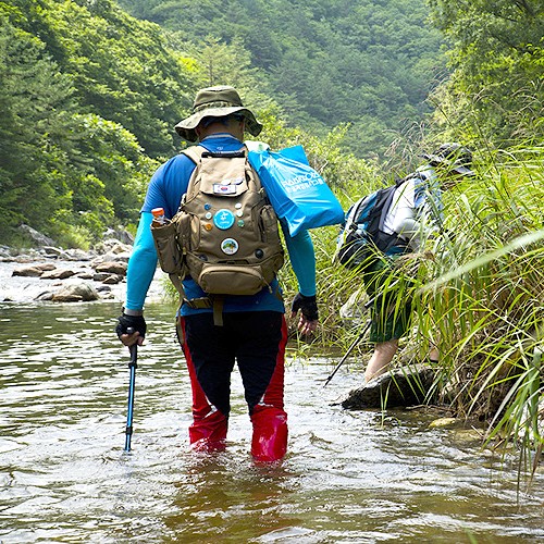 - 준비물 : 계곡물길 종,횡단 합니다. 스틱 필수입니다. 아쿠아 신발 물 속 걷는 기능성 신발을 준비할 경우 임도 구간에 필요한 트레킹화 또는 등산화를 준비하세요. 고어텍스등의 기능성 신발은 물속을 장시간 걸으면 기능이 손상될 수 도 있습니다. 옷이 젖을 경우를 대비 여벌옷 준비하시면 좋겠습니다. 긴바지 착용하세요. 간식, 음료, 모자, 장갑 등 임도 및 계곡물 종,횡단에 좋은 장비를 준비하세요.