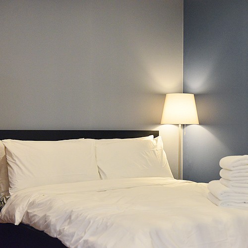 4인용 식탁과 얼음정수기 고급소파. 침대에는 최고급인 템퍼매트리스가 깔려있습니다.