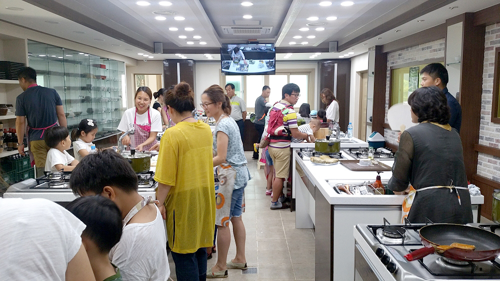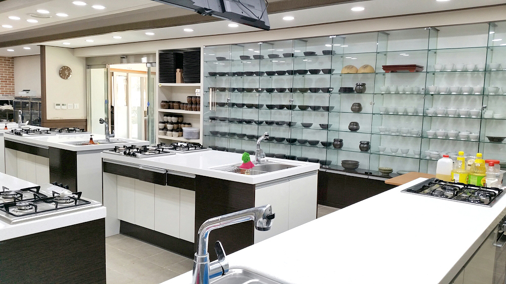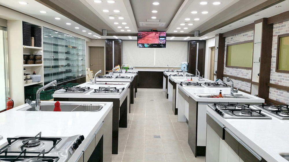 요리에 필요한 최신식 시설을 제공하고 있으며, 순조로운 강의 진행을 돕기 위해 대형 TV모니터도 설치해 놓고 있습니다.