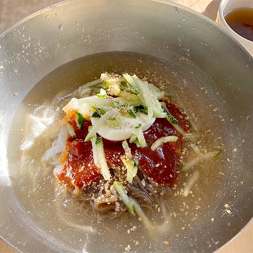 서울의 3대 냉면집 동아냉면의 대표 메뉴는 매운 다데기가 들어 있는 매운 물냉면이다.