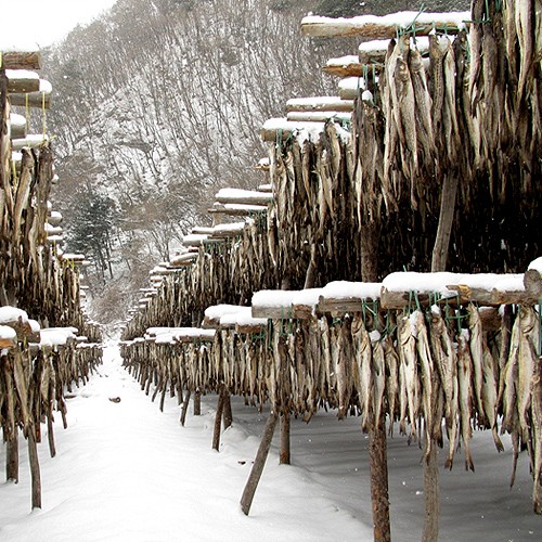 백담사 내설악 줄기, 굴골계곡 아래에 굴골황태덕장이 위치해 있다.