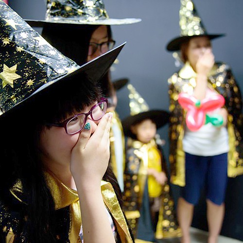 마법사가 직접 어린이들에게 마법을 선보이기도 하고, 직접 체험도 가능하다.
