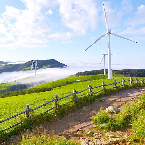 600만평의 푸른 초원에서 자유롭게 방목되는 동물들과 언덕위에 우뚝 솟은 풍력 발전기는 자연바람을 이용한 친환경 에너지원으로 국내 최대의 규모입니다.
