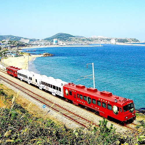 강릉-동해-삼척해변을 잇는 53km의 아름다운 동해안 해안선을 달리는 바다열차는 전 좌석이 바다방향으로 배치되어 있다.