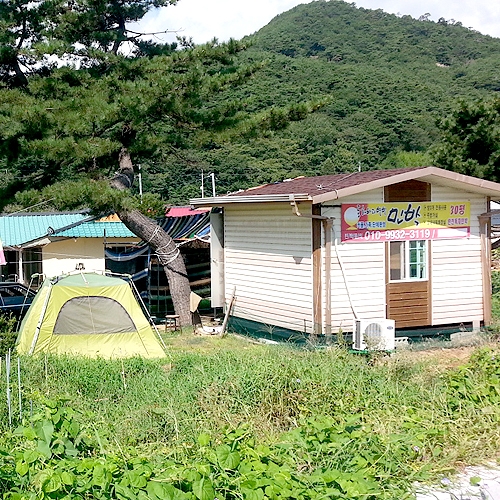 별빛민박 앞마당 텐트 캠핑 수용가능, 전기, 샤워, 화장실 구비