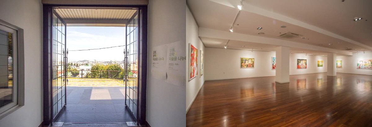강릉시립미술관은 2층 건물의 160여 평의 전시공간을 갖추며 강릉 시내의 모습을 감상할 수 있다.