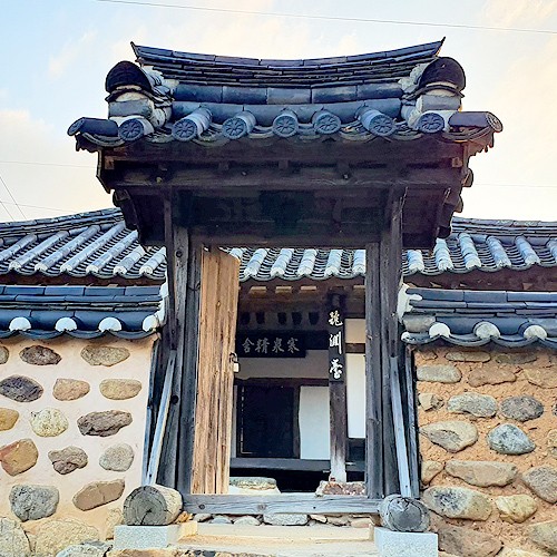 자연석 주춧돌 위에 네모기둥을 세우고, 가구형식은 3량가에 주위로 막돌담장을 둘렀다.